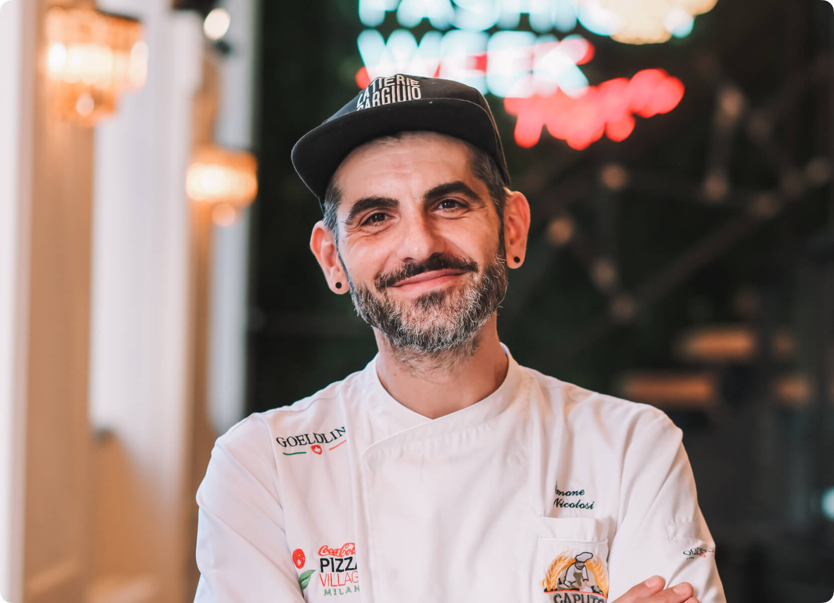 Chef Simone Nicolosi è l’anima creativa e tecnica dietro le pizze di Biga Milano. La sua passione per l’arte della pizza nasce a soli 14 anni, durante un’estate a Castellammare